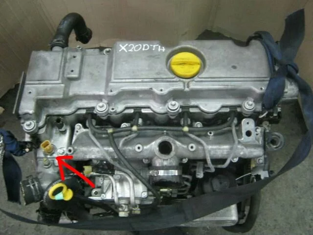 Месторасположение на двигателе датчика температуры на стрелку, Опель Вектра С, 2.2, дизель, 2002 г