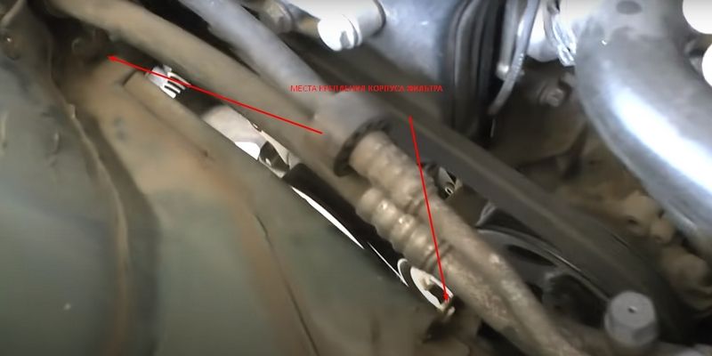 Открутите две гайки под головку на десять и снимите корпус фильтра.