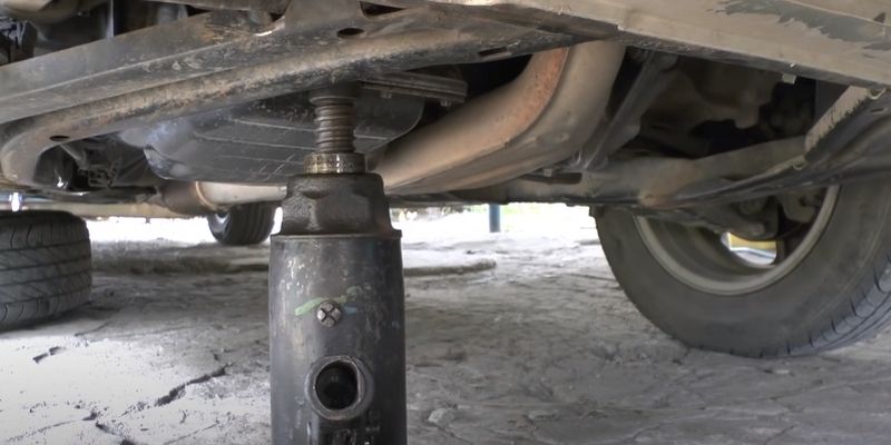 Затем слегка поддомкратьте двигатель и открутите три болта крепежа опоры двигателя. Болты под головку на шестнадцать.