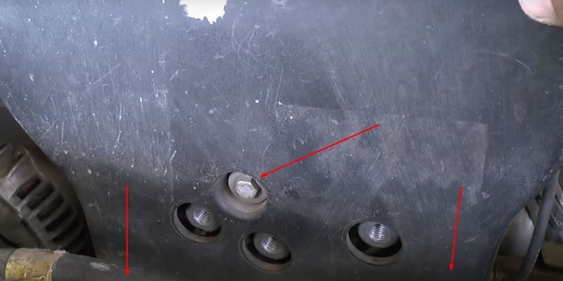 Ниже на фото отмечен один болт крепежа по центру, два других болта стоят чуть ниже.