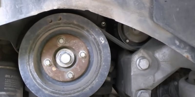 Снимите правое колесо и демонтируйте часть подкрылка напротив шкива коленчатого вала. Подкрылок закреплен тремя винтами снизу и двумя клипсами в арке. Клипсы удобно вынимать с помощью вилки, винты под крестовую отвертку.