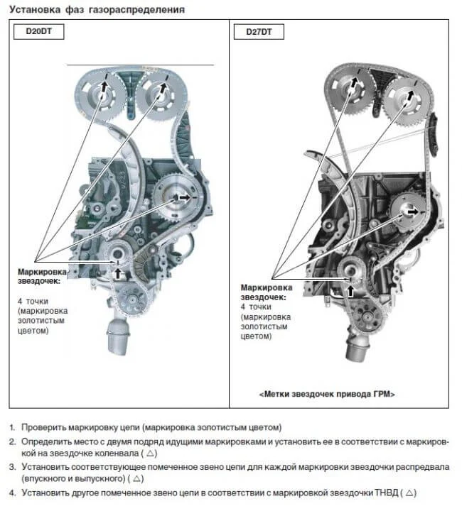 Как выставить метки ГРМ СсангЙонг Кирон D27DT?