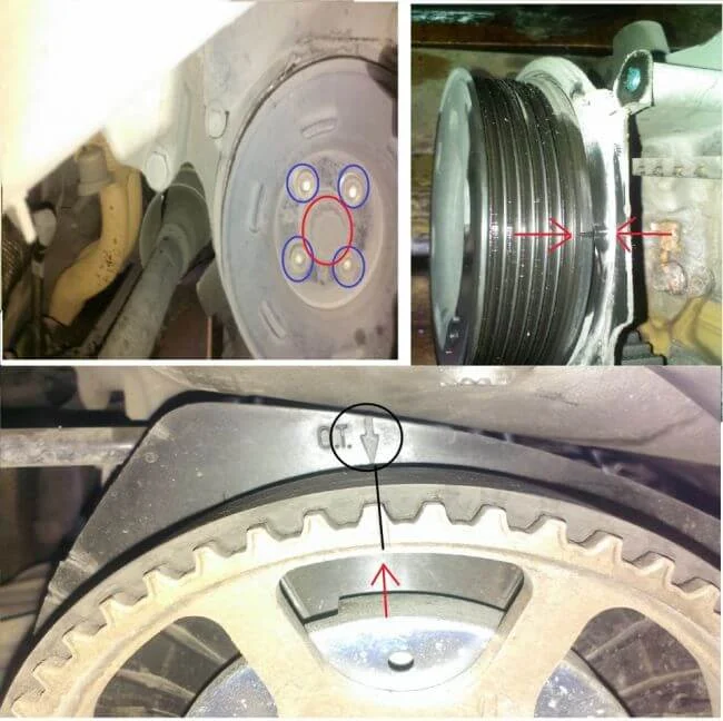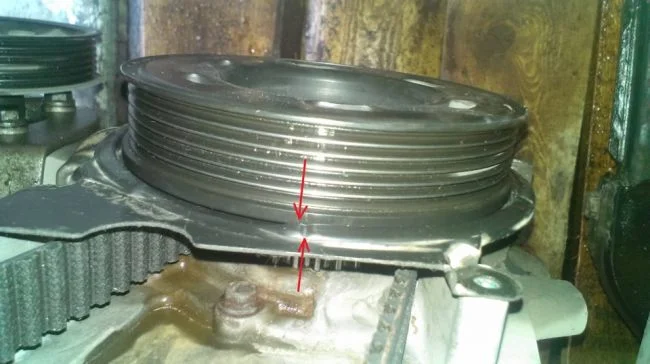 При запуске в на ХХ(после ночи), просвечивая метки стробоскопом — метка на КВ и на планшайбе автоматической коробки не совпадает, просвечивается раньше (но это может мозги так «рулят» УОЗ?!). На РВ — вроде попадает, но не совсем четко, а иначе не поставить. В этом плане японцы мне больше нравятся, там можно четко все настроить, а тут строго по зубам шестерен КВ и РВ и точка.