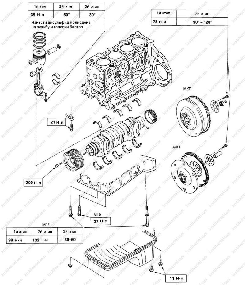 Какие моменты затяжки при сборке двигателя Исузу Эльф 4ВЕ1