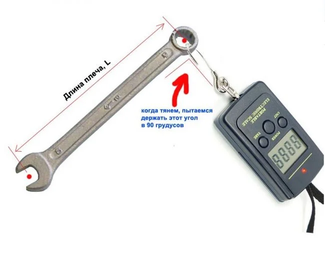 L — длина плеча (в см.), M — момент силы, F — сила воздействия (вес в кг)