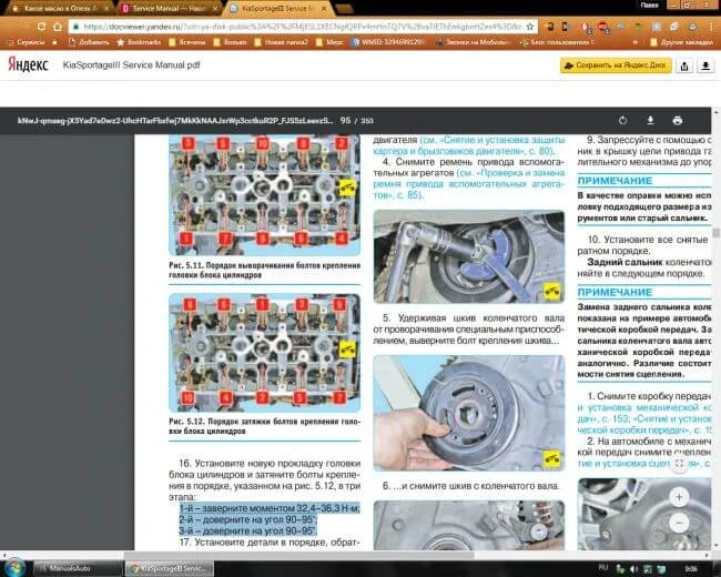 Какой момент затяжки болтов ГБЦ Киа Спортаж