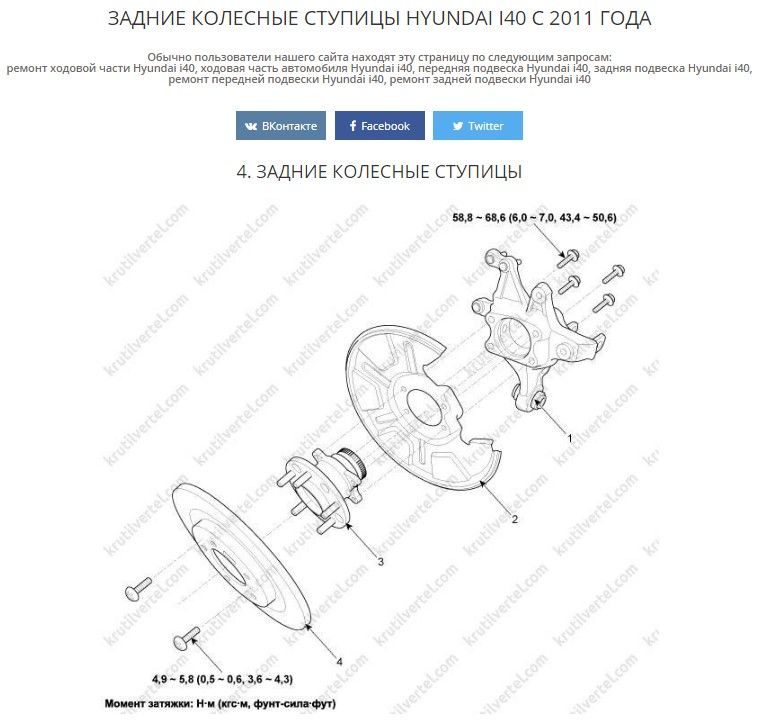 Какой момент затяжки гаек и болтов передней ступицы Хендай И40?