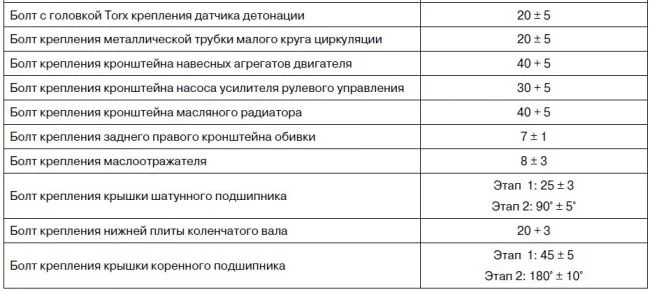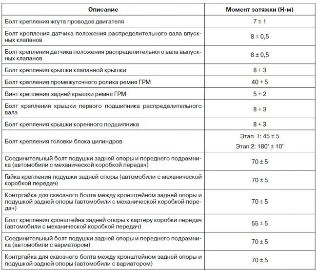 Какие моменты затяжек резьб двигателя 2.0 484 Чери Тигго?
