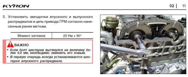 Моменты затяжек шестерен распредвалов? SsangYong Kyron 2.0