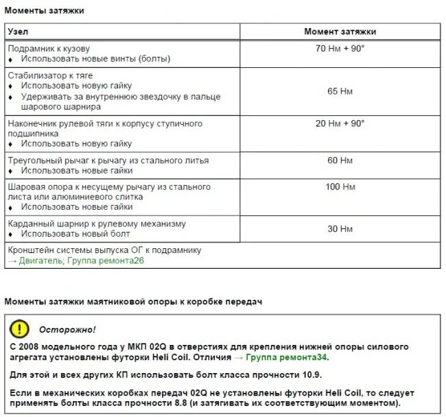 Моменты затяжки болтов подрамника с доворотом