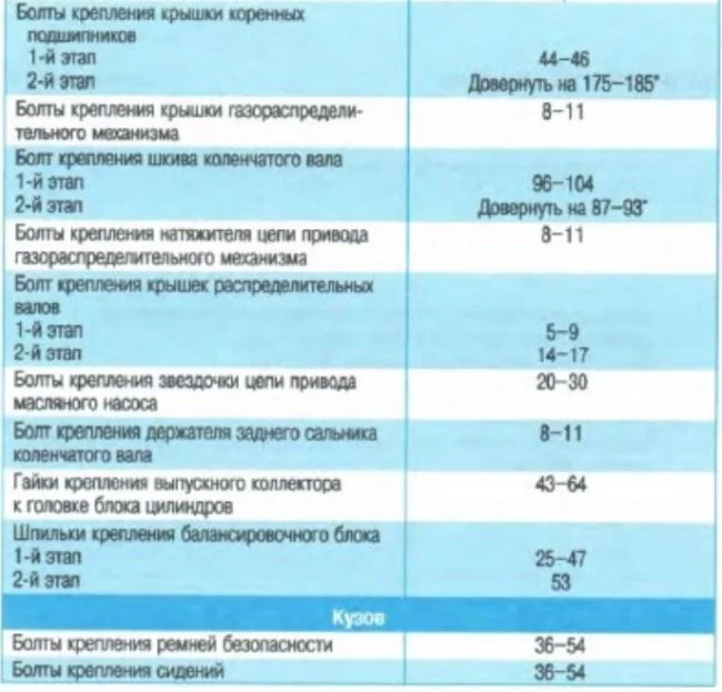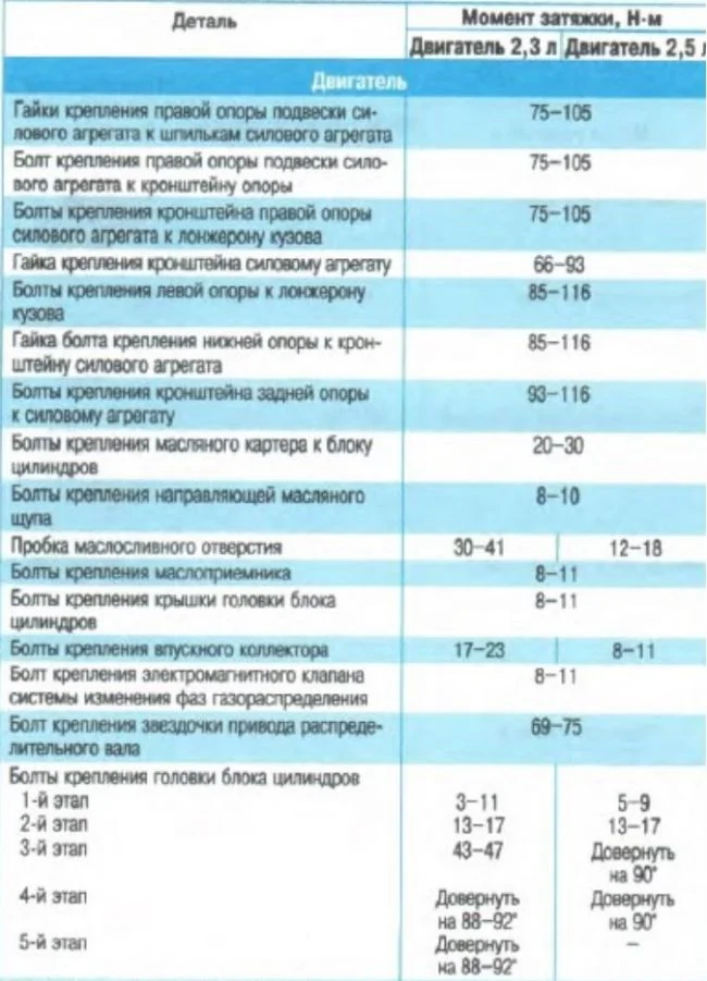 Какие моменты затяжки шатунов, ГБЦ, крышек распредвалов Мазда ЦИкс-7?