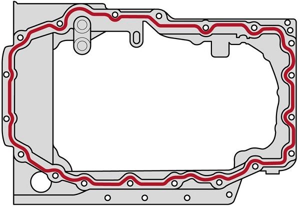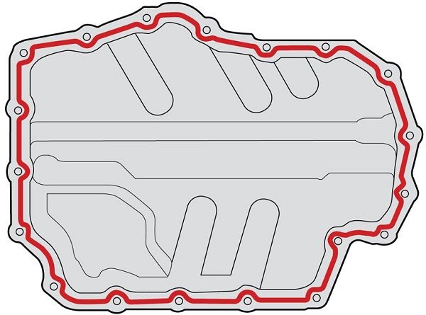 Перед тем, как крепить болты верха, всю контактную поверхность поддона нужно обработать герметиком. Распространять состав нужно строго по контуру толщиной полосы в 2,0-3,0 мм. После этого у вас есть 5 минут для установки деталей пока герметик не начал застывать. Ниже на картинке показано, как нужно правильно наносить герметик на верхнюю часть поддона картера (актуально для двигателя 1,4 CZDA — Skoda Kodiaq и VW Tiguan).