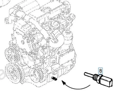 Датчик температуры стоит один, он дает данные на ЭБУ, от ЭБУ уже данные идут на щиток приборов. Указал стрелкой на фото, хотя на схеме он почему то в другом месте указан.