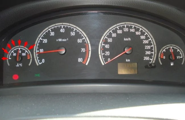 У вас такой же щиток приборов? Если да, то начинается с 70 и далее каждое деление по 5 градусов, 75, 80, 85, 90, 95, 100, 105, 110. А про датчик температуры вы почему спрашивали, что в итоге беспокоит? Только выше описанное?