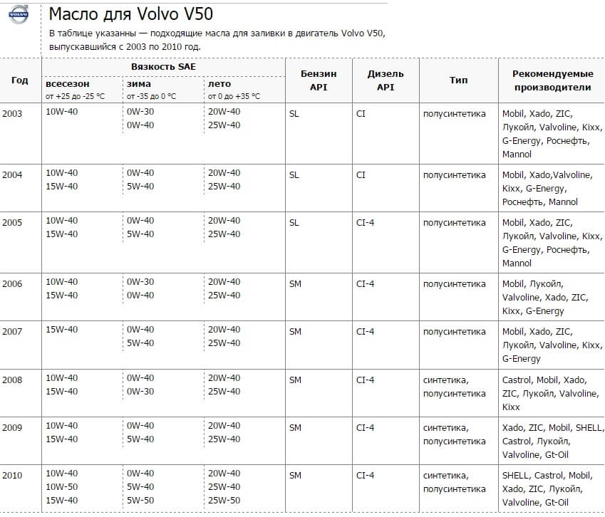 Какое масло заливать в Volvo V50?