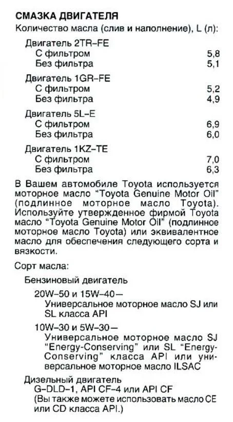 Объем моторного масла в двигателе 2TR-FE: 5.0л.