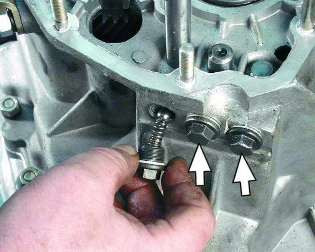 Заглушка фиксатора находится снаружи коробки, со смотровой ямы можно поменять пружинку (или усилить). Не потеряйте шарик.