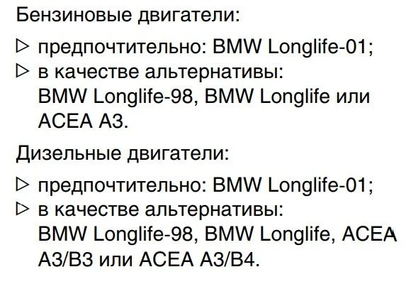 Производитель рекомендует заливать моторное масло BMW Longlife-01, тут указаны такие масла и вязкость. Выдержка из руководства.