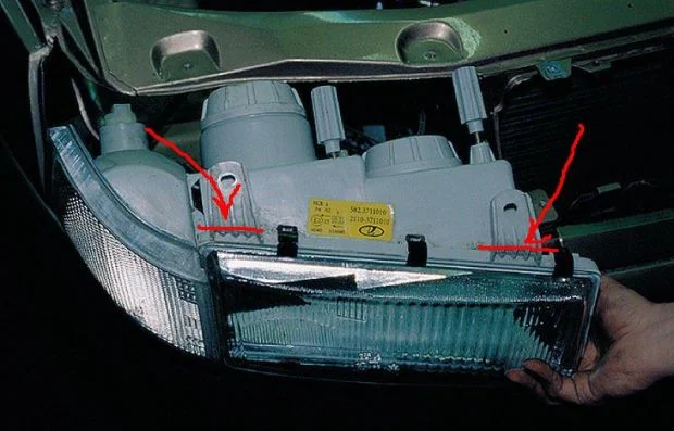 Как сделать крепления в этих местах? Сломаны два крепления передней фары, вот прямо где я показал.