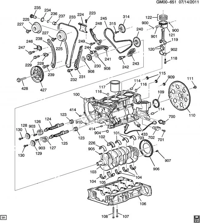 2.4 л. (2011-2013) двигатель бензин A24XE, LE5, там цепь ГРМ, даже их две