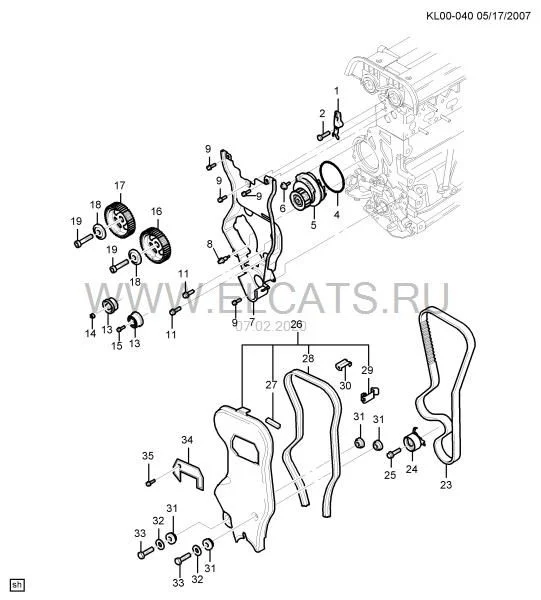 Где датчик положения коленвала на Шевроле Каптива Z24SED?