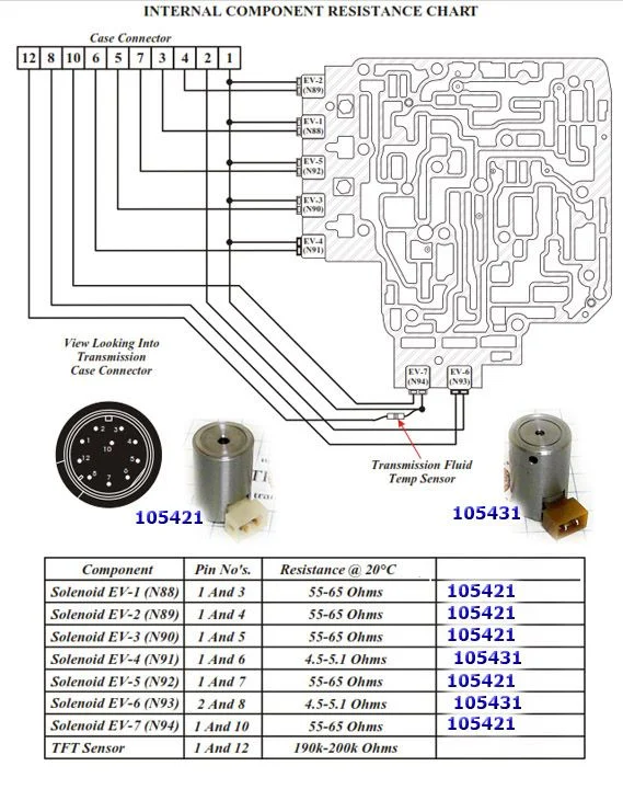 Я прозванивал на сопротивление именно от штекера сами соленоиды без снятия поддона. Значения вот такие: 93 соленоид имеет 5,2 Ом, остальные все по 37,5-38 Ом, т е по вашей приведенной схеме. Если соленоиды имеют меньшее сопротивление это ведь не есть норма?