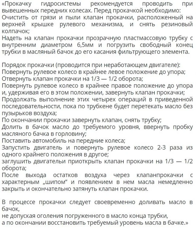 После заливки масла не забудьте прокачать систему гидроусилителя при вывешенных передних колёсах.