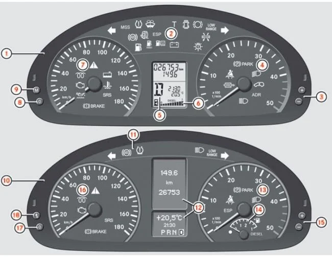 Какие значки есть на панели приборов Мерседес Спринтер В906?