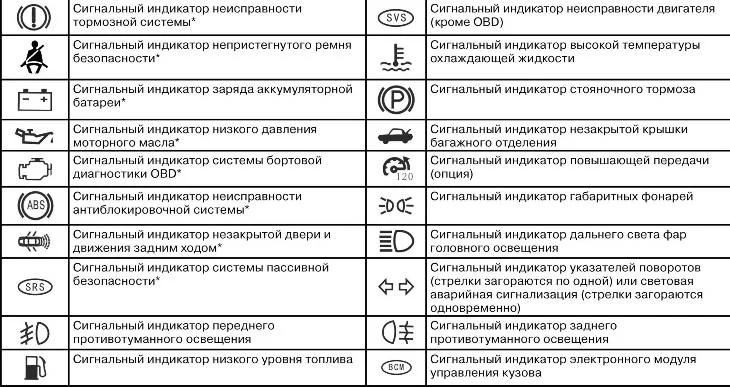 Расшифровка значков на приборной панели