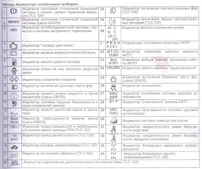 Горит индикатор автомобиль Тойота Ленда Крузер Прадо 120
