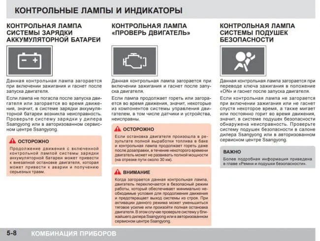 На панели приборов желтый кран в СсайнгЙонг Актион 2