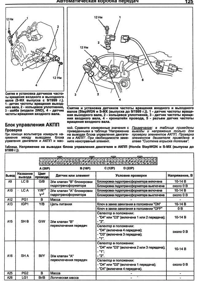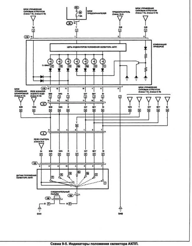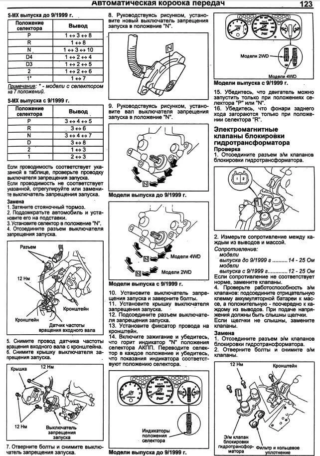 Вам может помочь выдержка из руководства и по датчику положения селектора акпп и по соленоидам акпп и эл. схемы по акпп.
