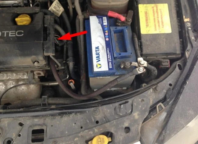 Где находится минусовая клемма на двигателе Опель Зафира Б?