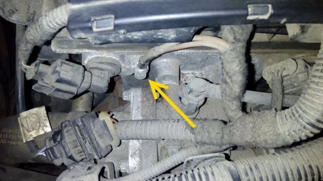 Посмотрите слева на двигателе, по ходу движения, так же по ссылке автор прокинул дополнительную массу, закрепил вместо кронштейна для вывешивания двигателя.