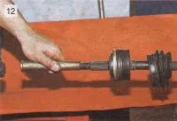 … и через выколотку из мягкого металла напрессовываем шарнир на вал.
