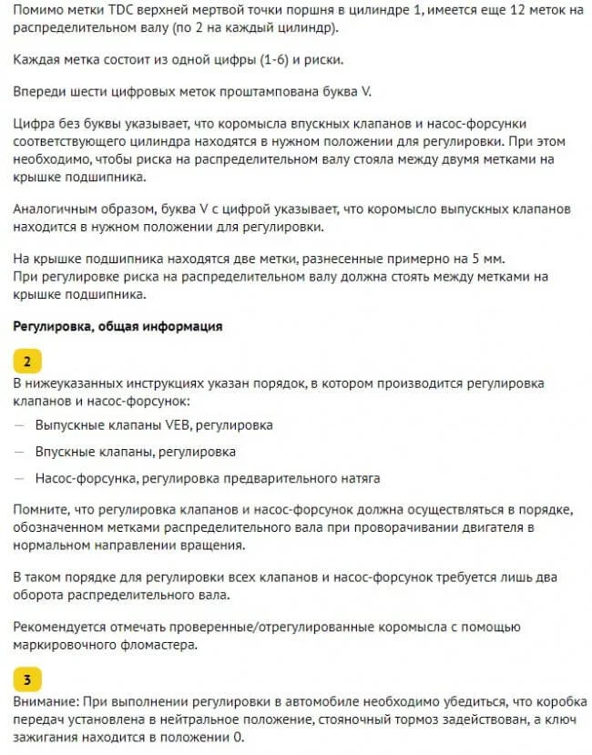 Какой порядок регулировки насос-форсунок, двигатель Volvo d12d?