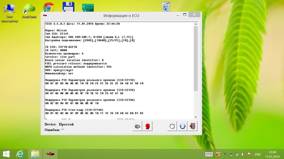 В такой связке получится не только произвести диагностику двигателя, блока ABS, системы SRS и т.д, но и стирать ошибки, читать таблицы параметров, строить графики. Прикрепляю пару скриншотов, как работает программа.