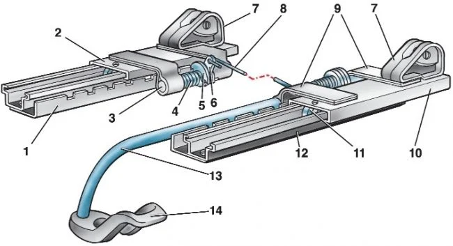 Когда оборвана, то получается со стороны рычага салазка при нажатии на него разблокируется и стает подвижной, но противоположная заблокирована и недвижима-она и держит все на месте не давая вам произвести регулировку.