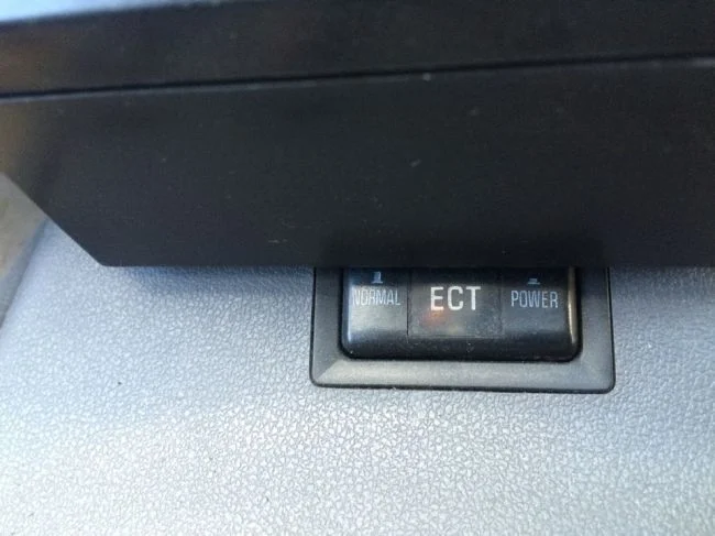 Значок в виде двигателя то же горит или вы чеком назвали значок ect PWR? Если Чек (значок в виде двигателя) не горит, то проблема может быть например в самой кнопке включения режима ECT PWR или ее проводах, в блоке управления кпп.