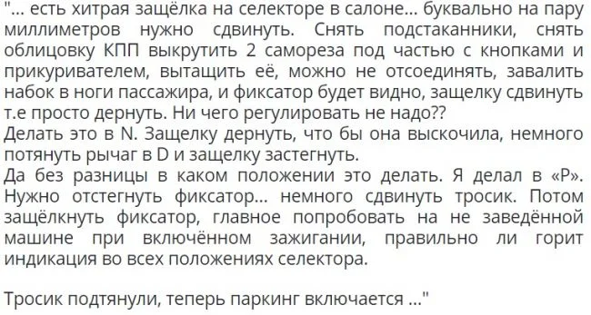 После разбора «коробки», для замены маховика, перестала гореть буква «Р» (паркинг), на дисплее. Все остальные буквы горят. Какие могут быть причины и способы устранения?