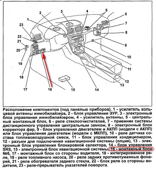 Также при замыкании лампочки багажника на массу (вследствие случайного удара по плафону во время погрузки багажника) может перегореть диод, который расположен за передней панелью. Сложность заключается в том, что он находится в толстом жгуте проводов и подобраться к нему можно двумя способами - при снятии лобового стекла или только снизу одной рукой, и то наощупь чтобы не снимать панель.