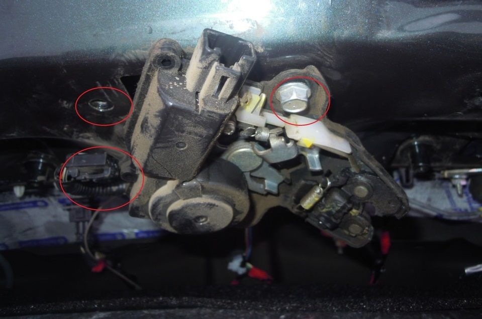 - сперва демонтируйте обшивку крышки багажника (чтобы добраться до замка необходимо снять 4 клипсы);