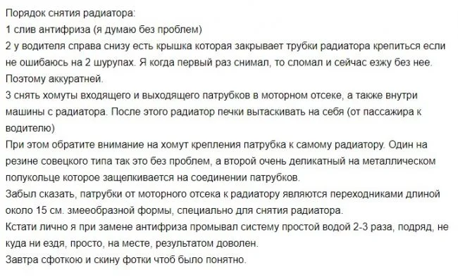 Уважаемые специалисты подскажите пожалуйста, как добраться до радиатора печки? Так как она стала плохо греть. Или хотя бы на него взглянуть, может почистить его от пыли, грязи, промыть его, так как машина не новая.