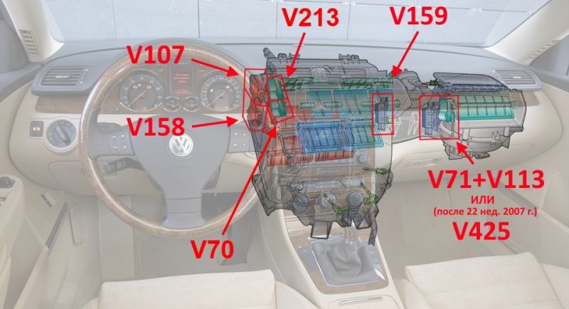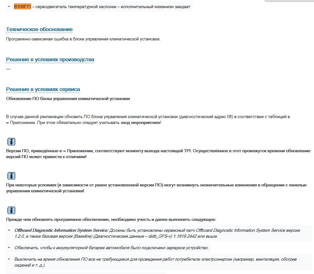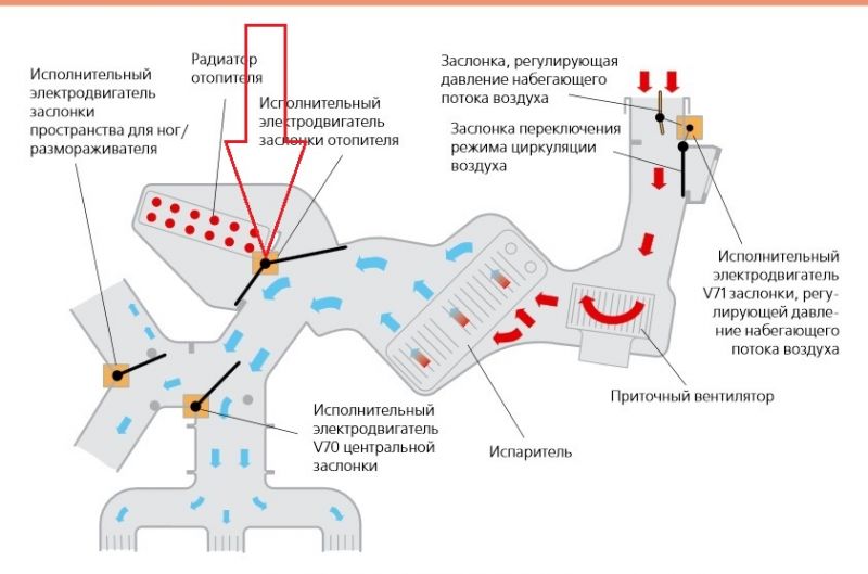 Здравствуйте. Скажите пожалуйста какой из серводвигателей неисправен? В ВАСЕ ошибка B108F71 – серводвигатель температурной заслонки. Пассат В7, USA, 2014. В машине дует холодом отовсюду.