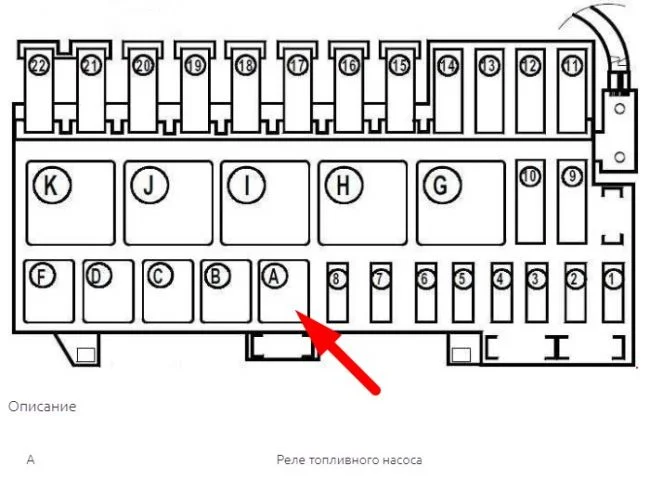 Здравствуйте! Хочу слить плохой бензин из-за которого начала троить и дымить машина после заправки, а утром и вовсе перестала заводится. Планирую снять шланг подачи топлива с топливной рампы, достать реле бензонасоса и перемкнуть клеммы релюшки. Крышку с блоком реле открыл, а какое из них реле бензонасоса понять не могу. Сделал фото