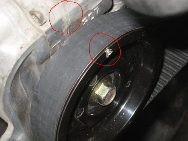 Выставляется вначале ВМТ первого цилиндра, проверяется метка на коленвале(если не дошёл коленвал, тогда докрутить до метки)