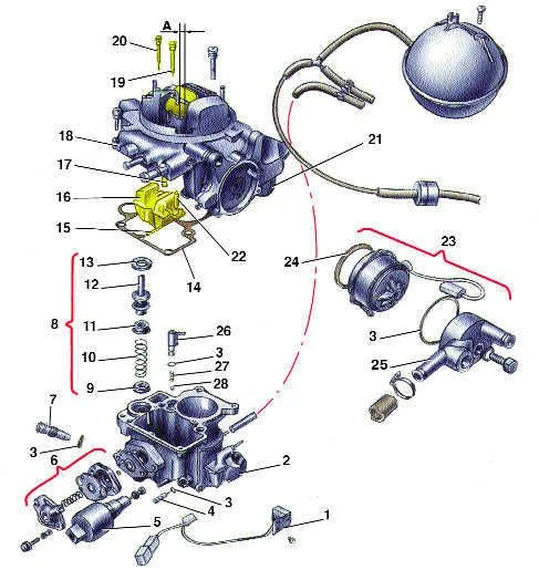 Нужна схема карбюратора 1В-1 с прогревом корпуса от охлаждающей жидкости