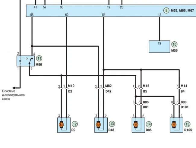 Если открыть страницу 367 или 368, то на схеме видно что привода замков задних дверей подключены параллельно, это значит что и двери должны открываться и закрываться одновременно(кстати, судя по схеме там эл мотор.) Делайте выводы.