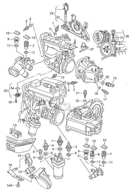 Под цифрой 7 он сбоку двигателя то бишь спереди. У двигателя поперечно стоит на тройнике.