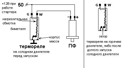 По поводу двух датчиков мы сейчас решим. Вот смотрите это схема работы форсунки. Вот + он всегда при вращении стартера должен быть. Проверьте есть на каком-нибудь контакте пусковой. А минус управляющий он появляется в зависимости от температуры, ТВВК минусом управляет. ТВВК-термовременный выключатель